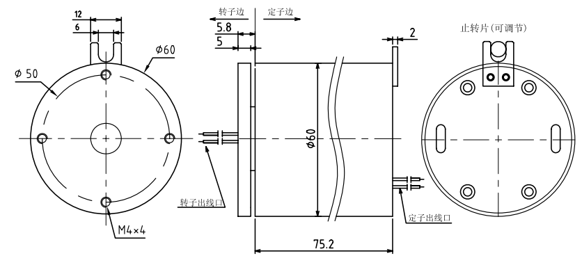 緊定螺絲固定。定子部分通過止轉(zhuǎn)片與設(shè)備固定部位連接。