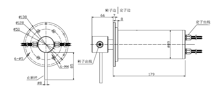 如圖所示:將導電環裝在傳動軸需要的位置,用轉子上四個